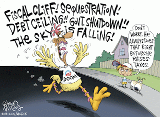President Obama has been warning America that if Congress allows mandatory spending “cuts” of a piddly-widdly 2 percent to go into effect this week, the sky will fall. The manufactured crisis of “sequestration” was Obama’s idea in the first place.